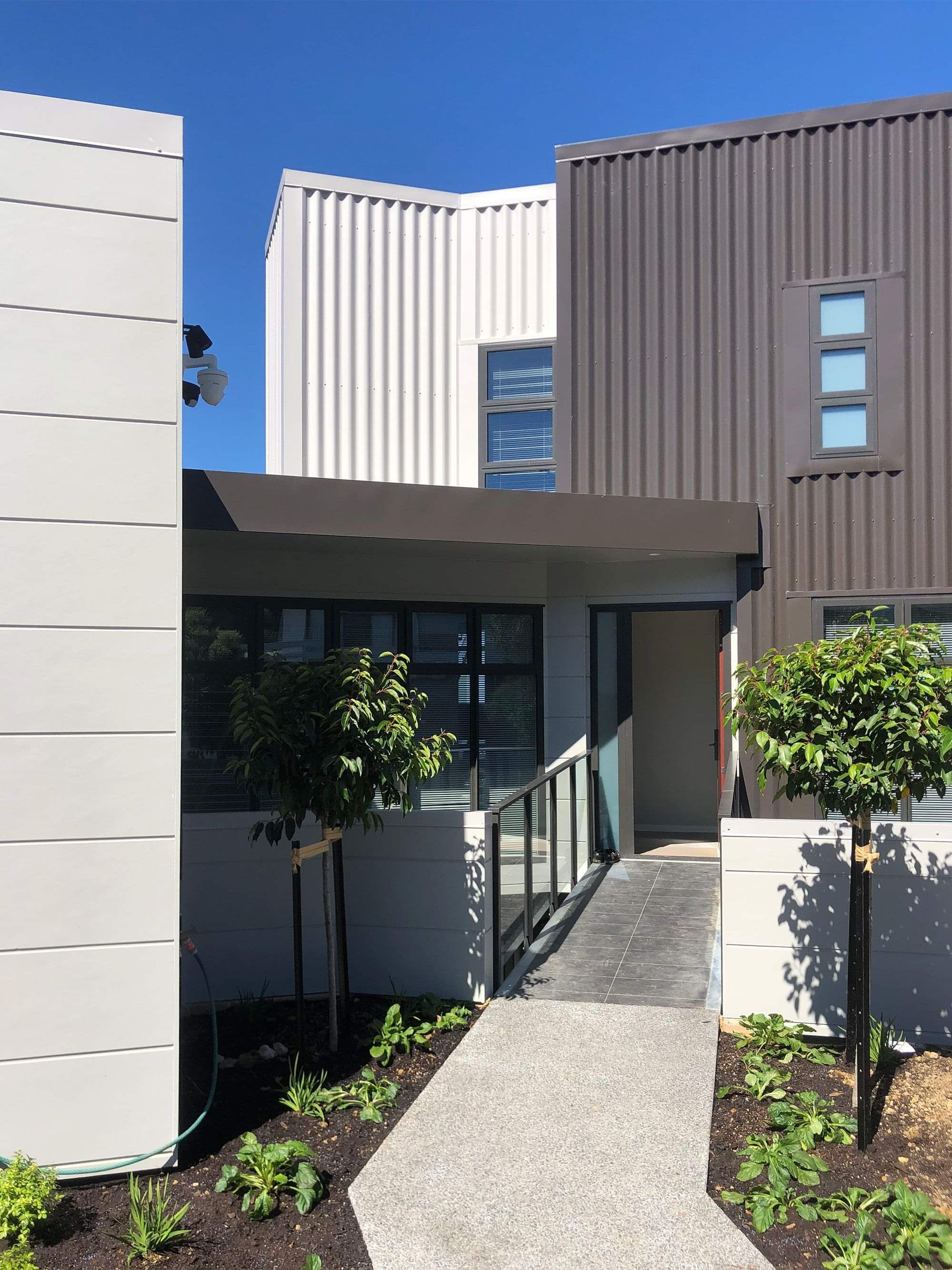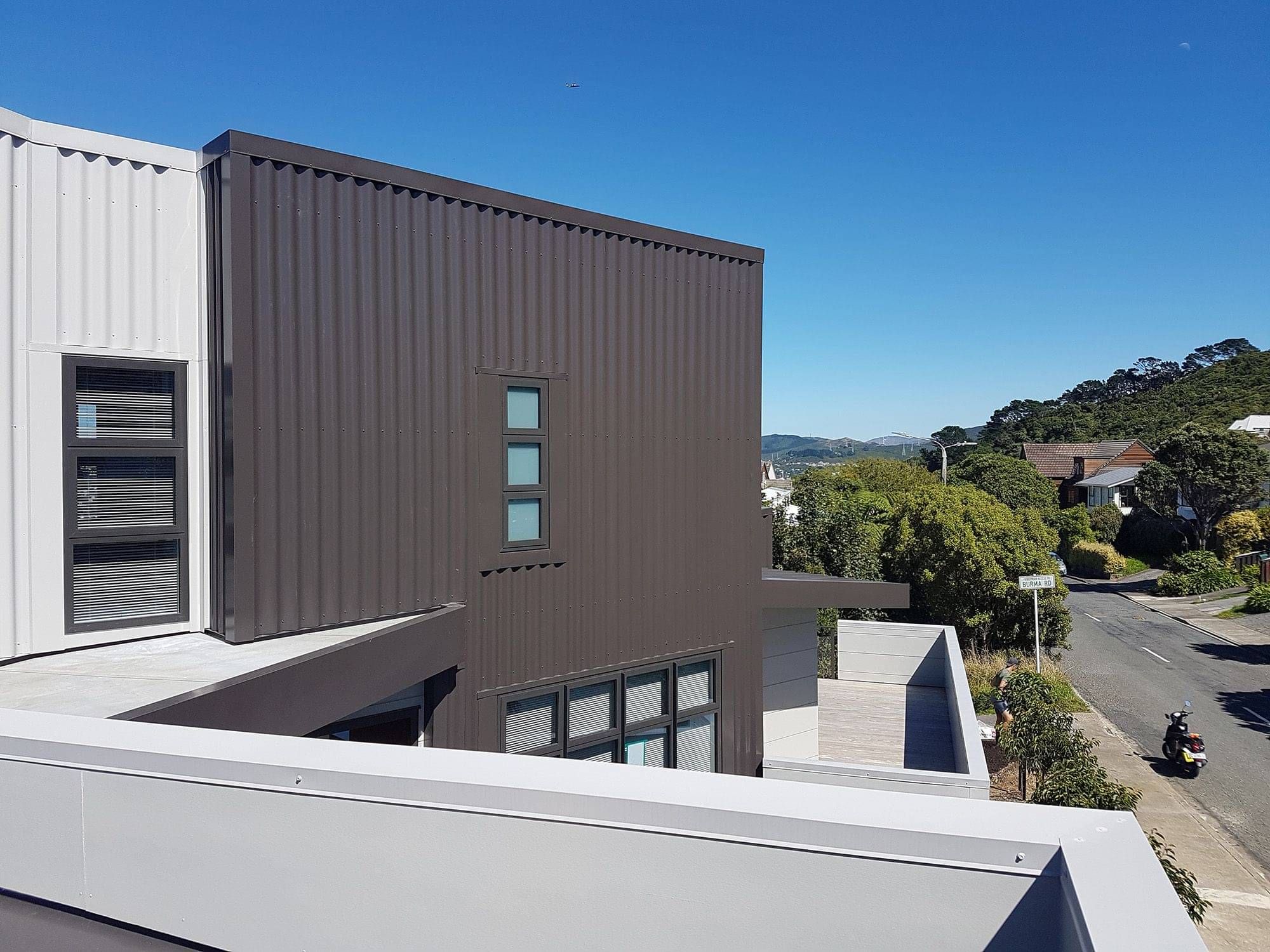 The exterior cladding is long-run colour-coated steel for simplicity and low maintenance. The active solar design included tiled masonry thermal masses adjacent to north-facing glazing and ducted re-circulation of warm air throughout the house. Summer cooling is achieved via thermostatically controlled stack ventilation utilising the tower geometry.