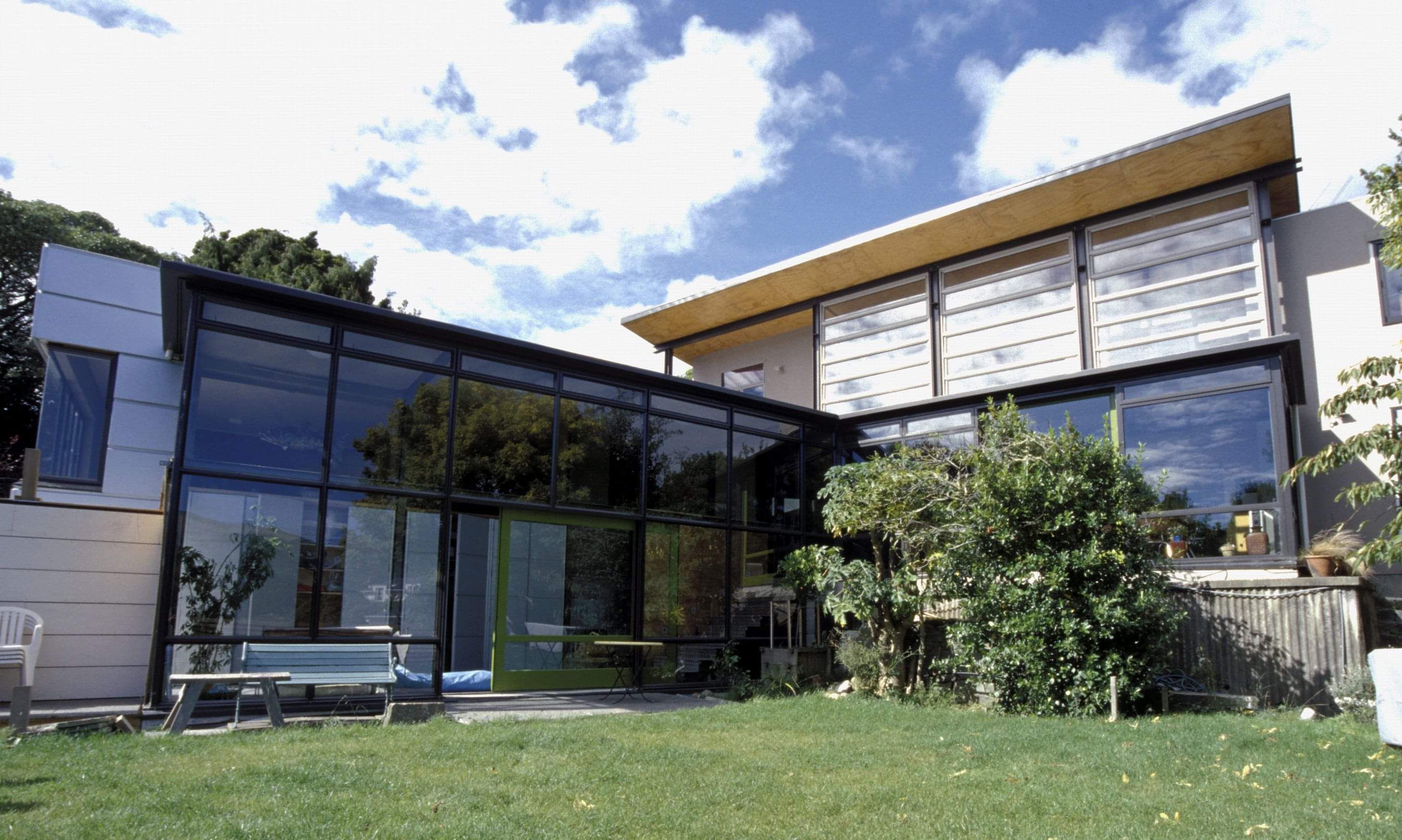 The Wright family have been willing participants in the prototype active solar experiment that has been their home since 2001. The second wing of the home is separated from living areas with a dividable lobby, and functions as the offices of Aonui Architecture.