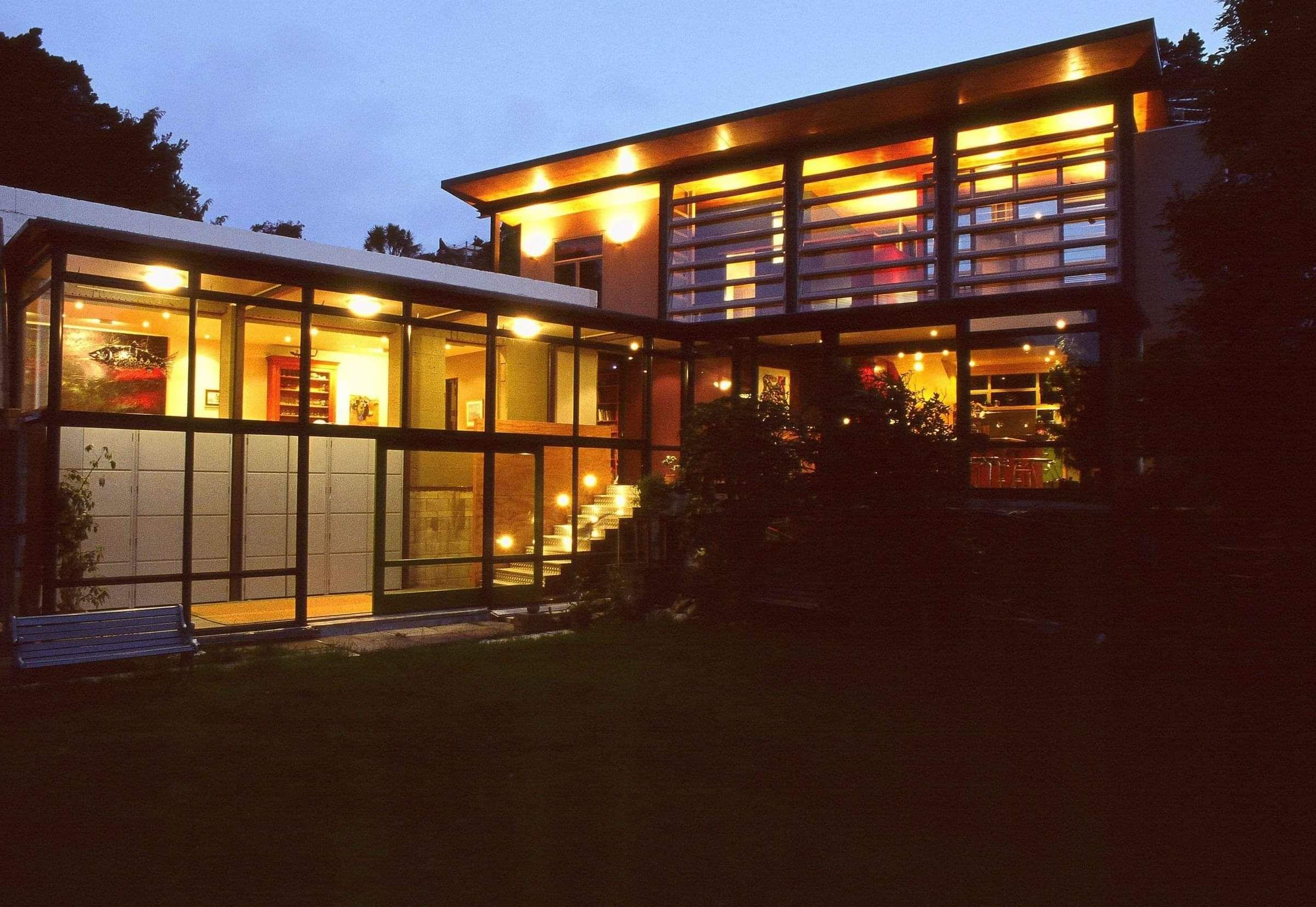The Wright family have been willing participants in the prototype active solar experiment that has been their home since 2001.The second wing of the home is separated from living areas with a dividable lobby, and functions as the offices of Aonui Architecture. and the building company, Wright Industrial.